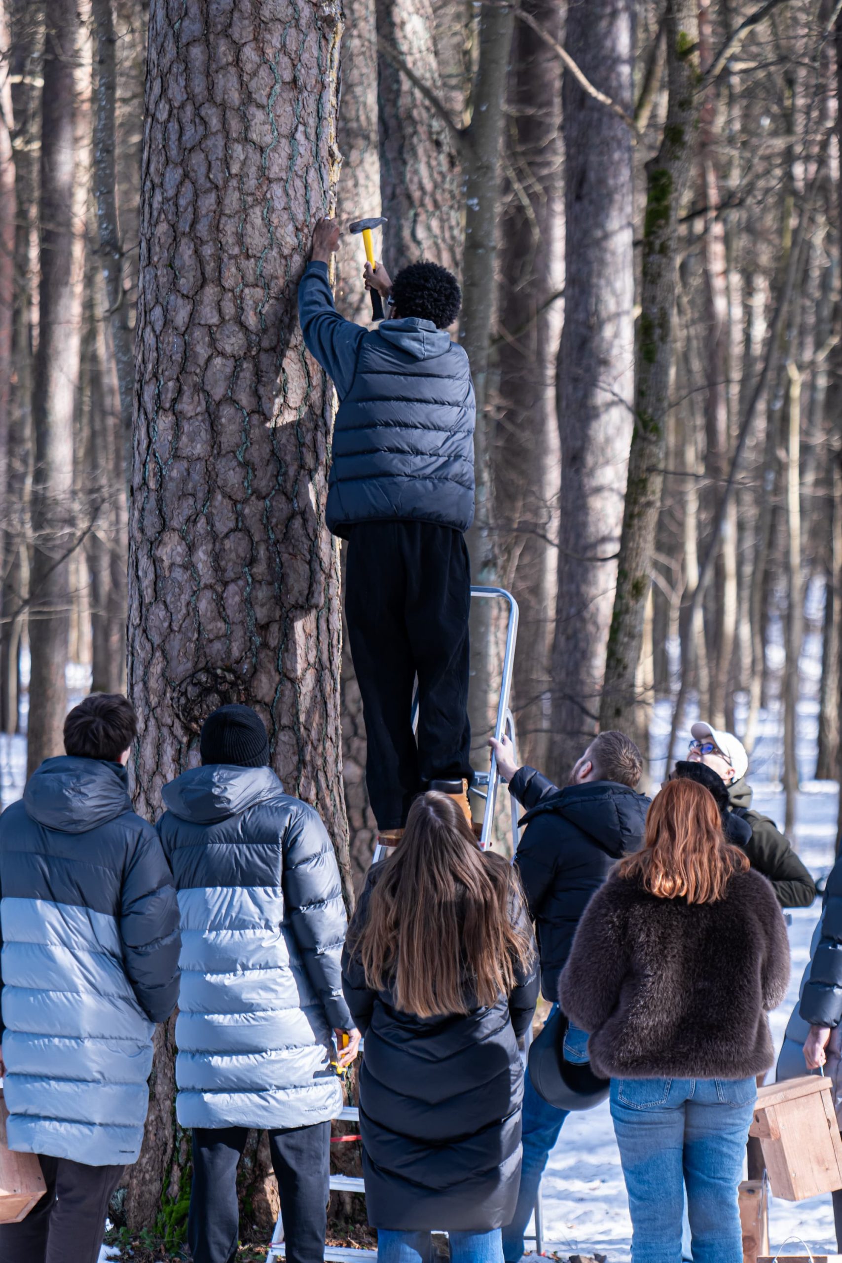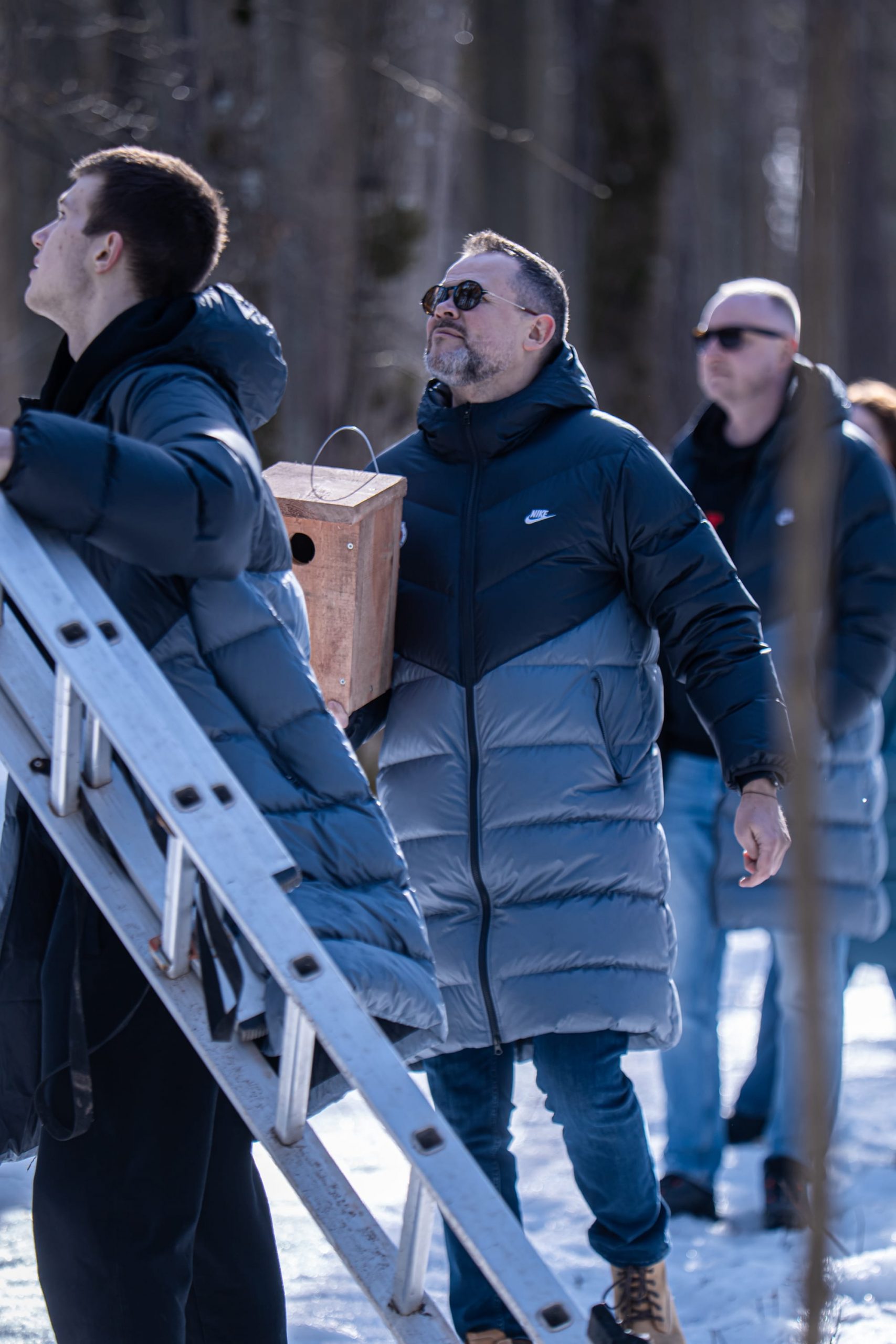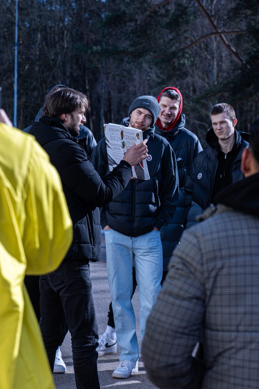 The activity kicked off with a short lecture from a pro who introduced us to the birds that inhabit Vingis Park – and the ones that will be arriving soon. It was a grounding reminder that urban green spaces are living ecosystems quietly doing their work around us every day. From there, we fanned out across the park, finding spots for the feeders that will soon welcome the season’s first arrivals.