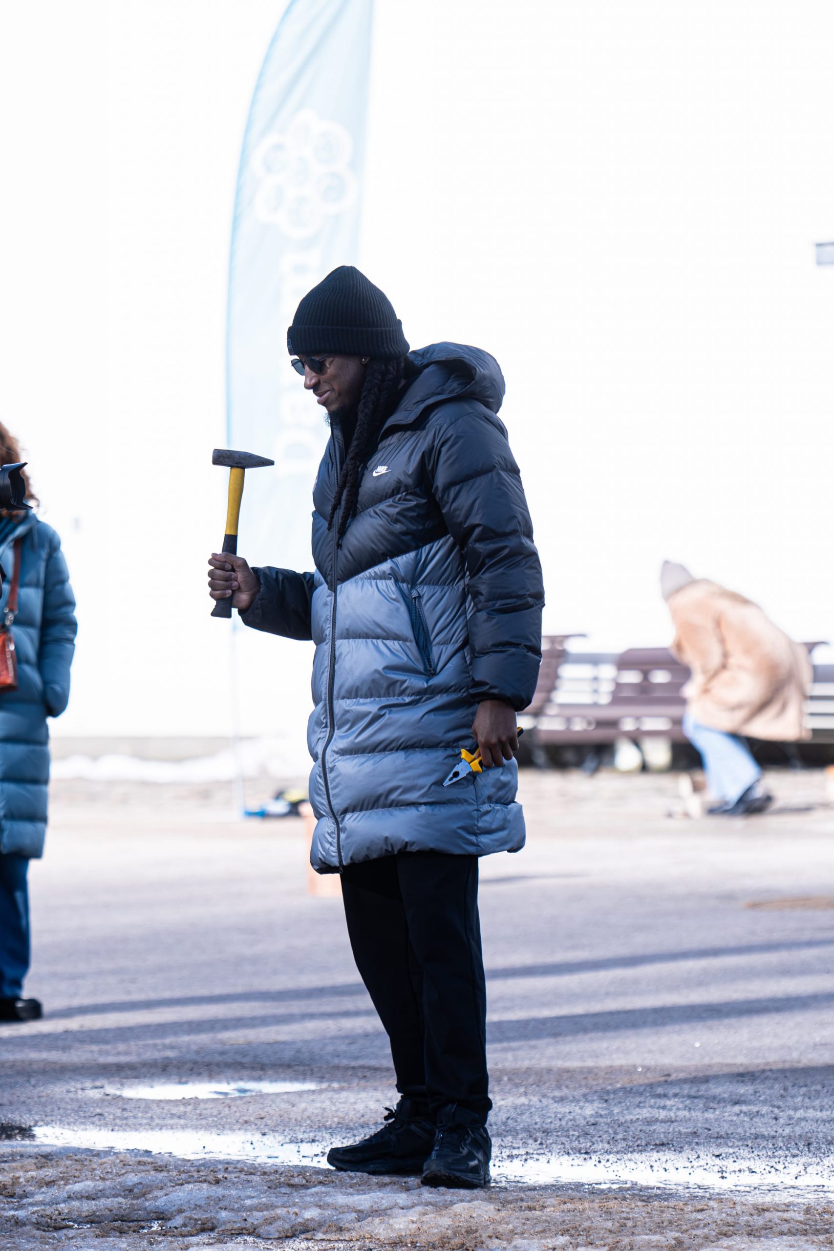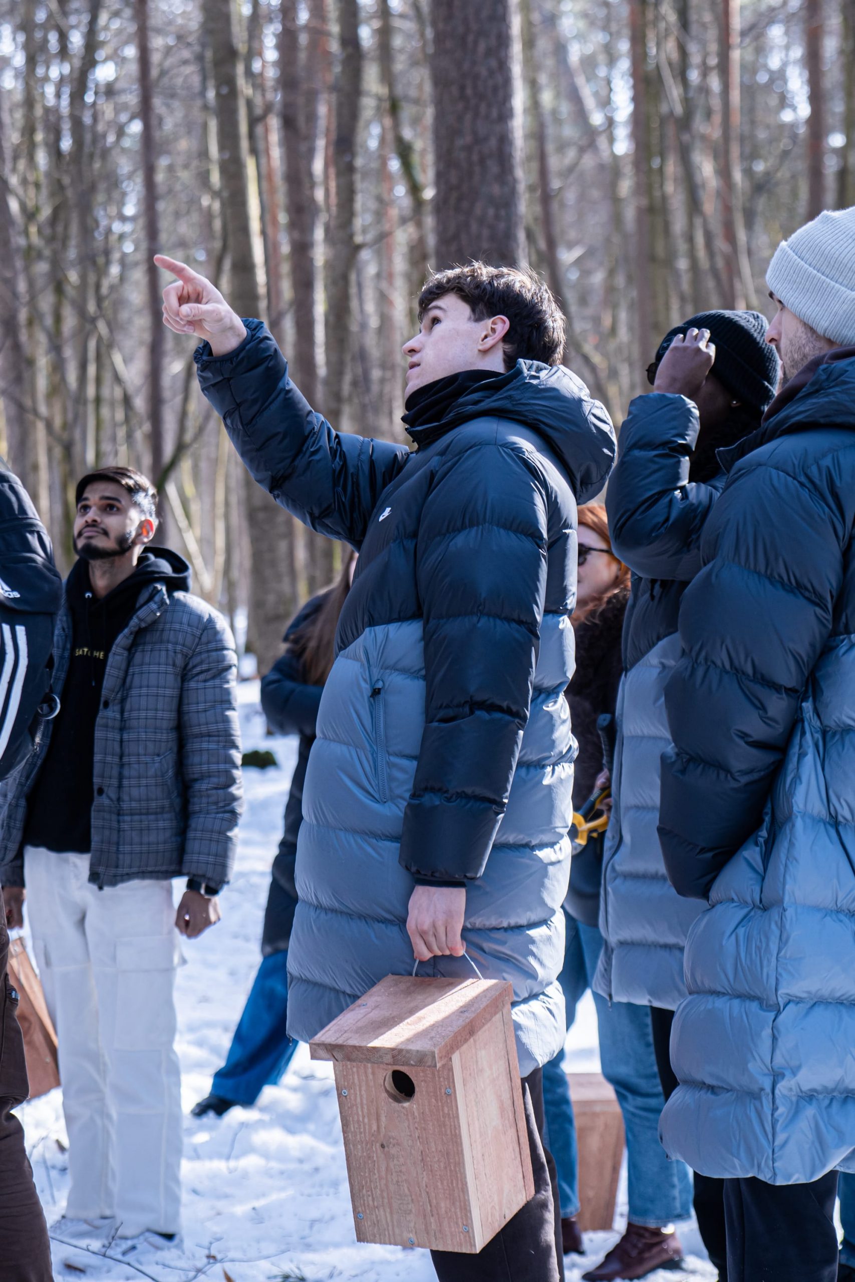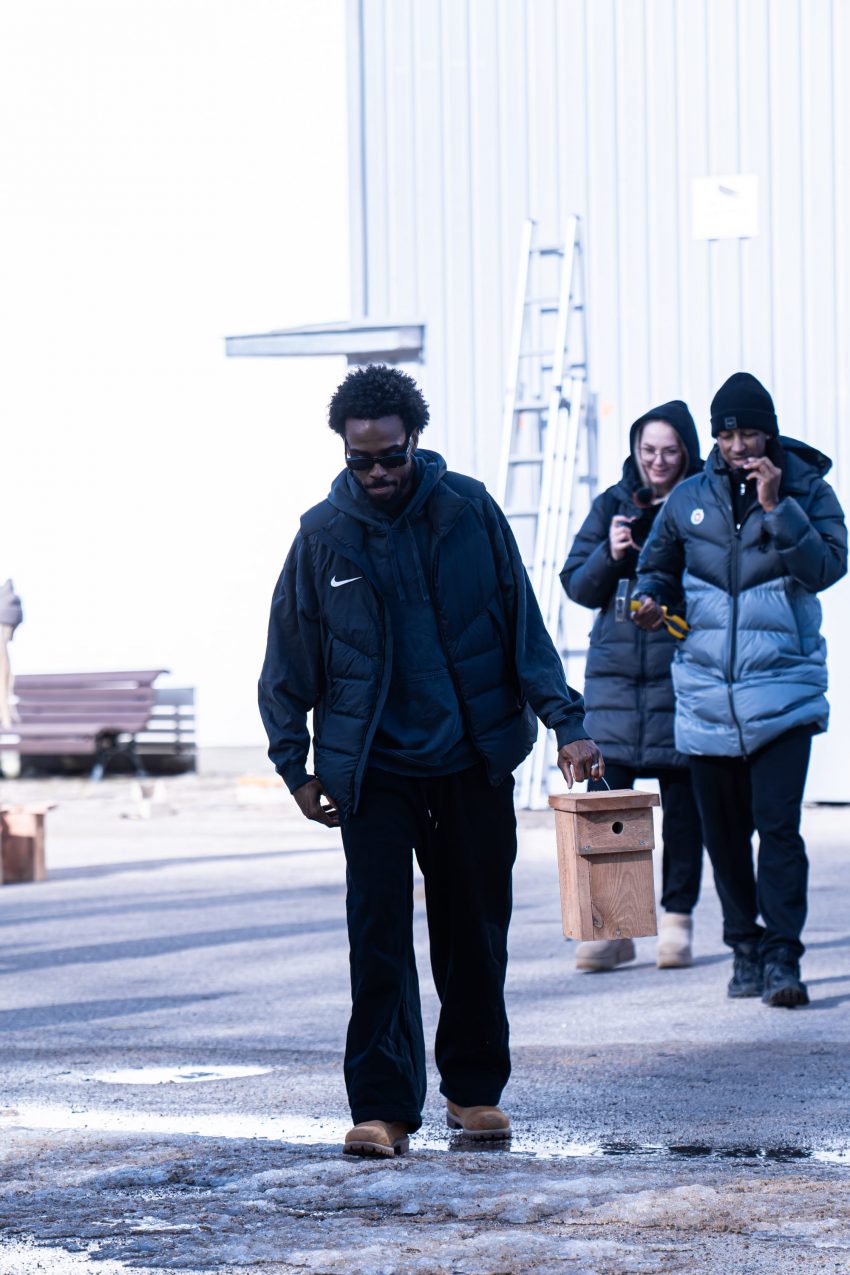The activity kicked off with a short lecture from a pro who introduced us to the birds that inhabit Vingis Park – and the ones that will be arriving soon. It was a grounding reminder that urban green spaces are living ecosystems quietly doing their work around us every day. From there, we fanned out across the park, finding spots for the feeders that will soon welcome the season’s first arrivals.