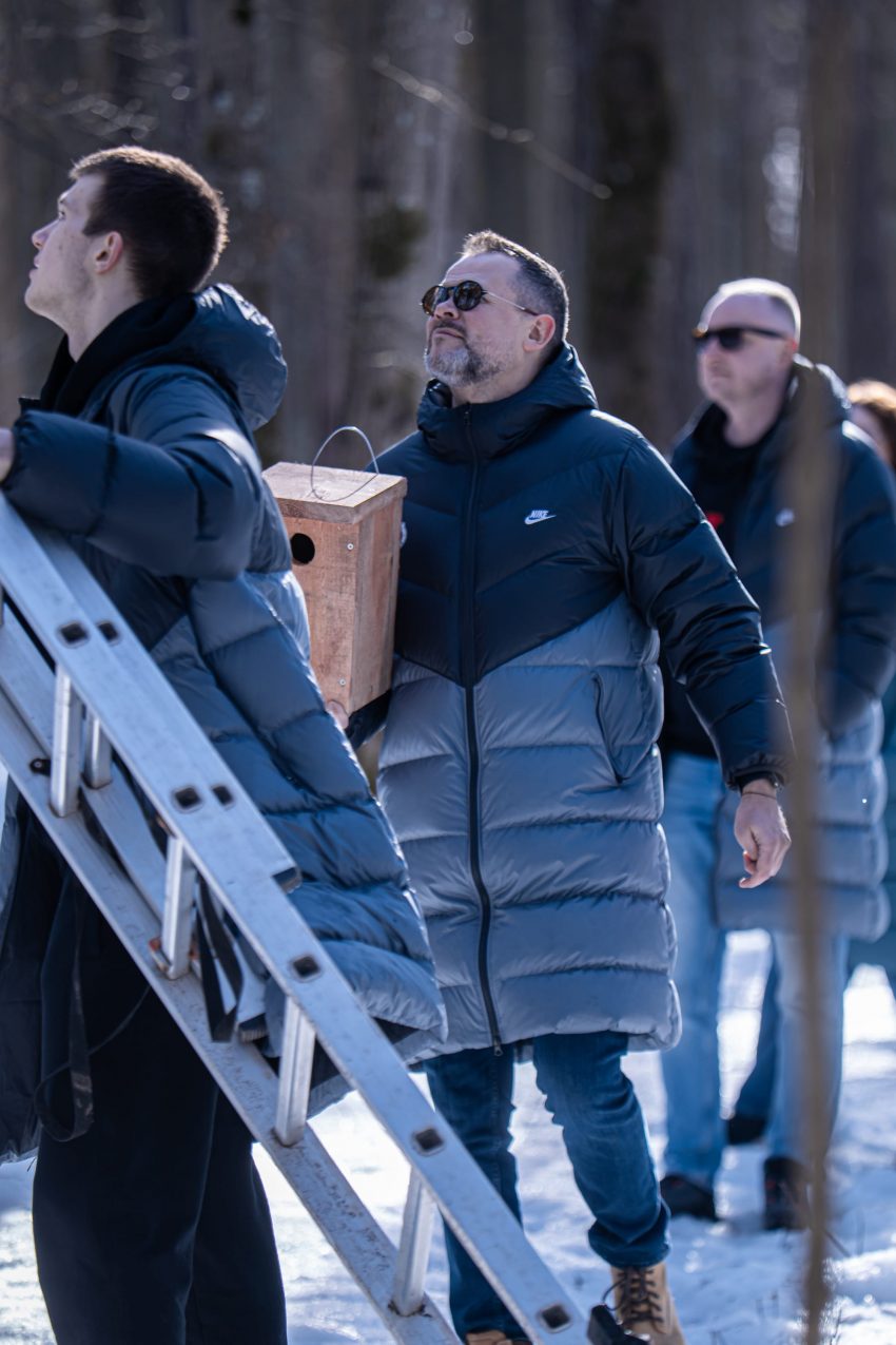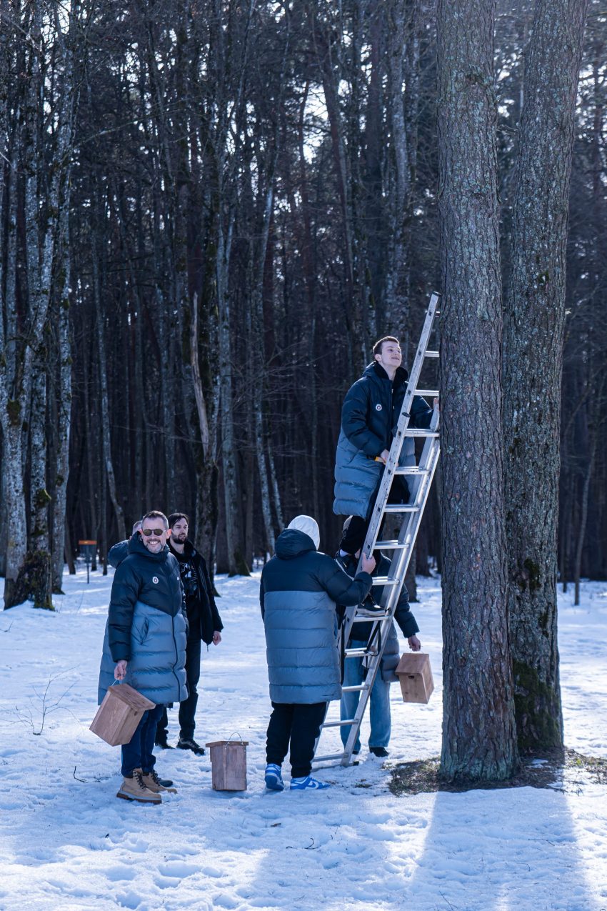 Last Friday, we traded our office desks for Vingis Park. Together with our long-standing partners, BC Rytas, and environmental organisation Mes Darom, our team spent the afternoon hanging bird feeders across one of Vilnius’ most beloved green spaces – just in time for tomorrow’s Day of Forty Birds.