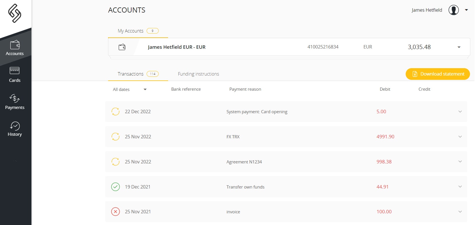 Each Customer has the option to download an account statement of his/her particular account that shows the transactions flow for the period selected.