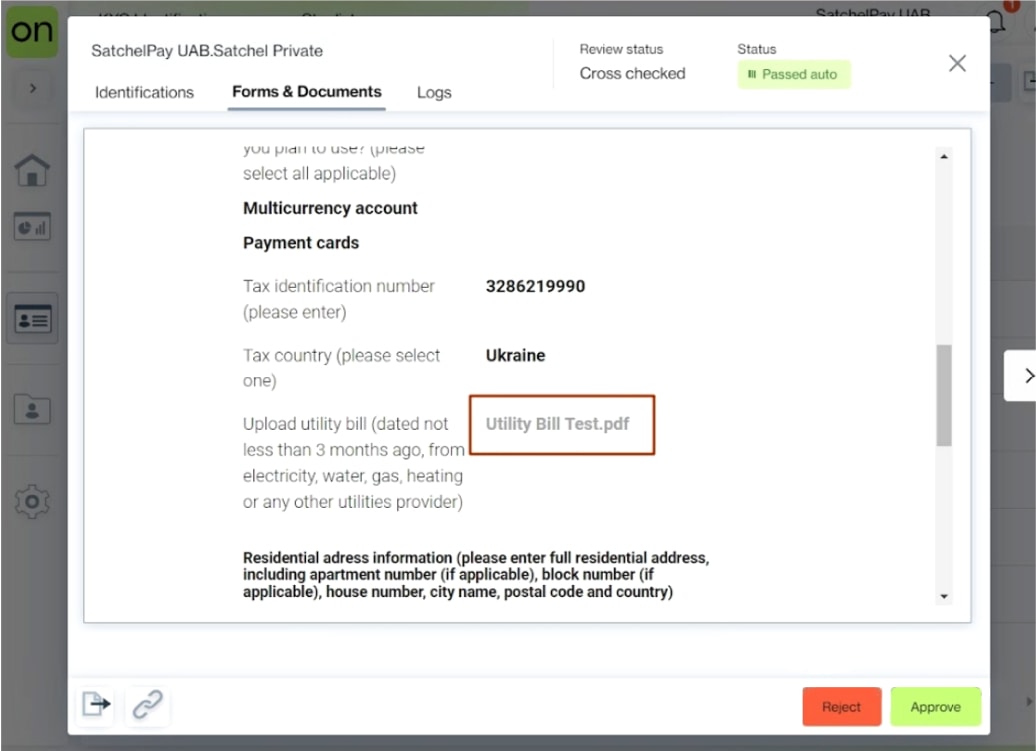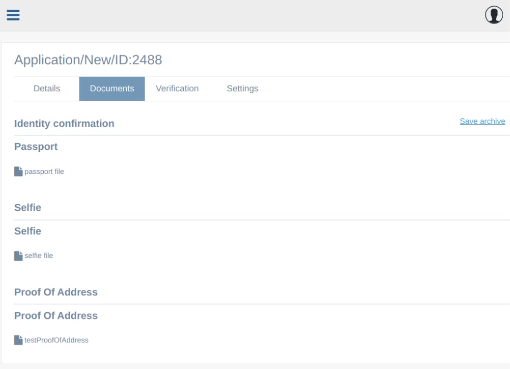 Passport/ID card document and selfie files are available in the Back Office, Ondato Dashboard and Satchel CRM.