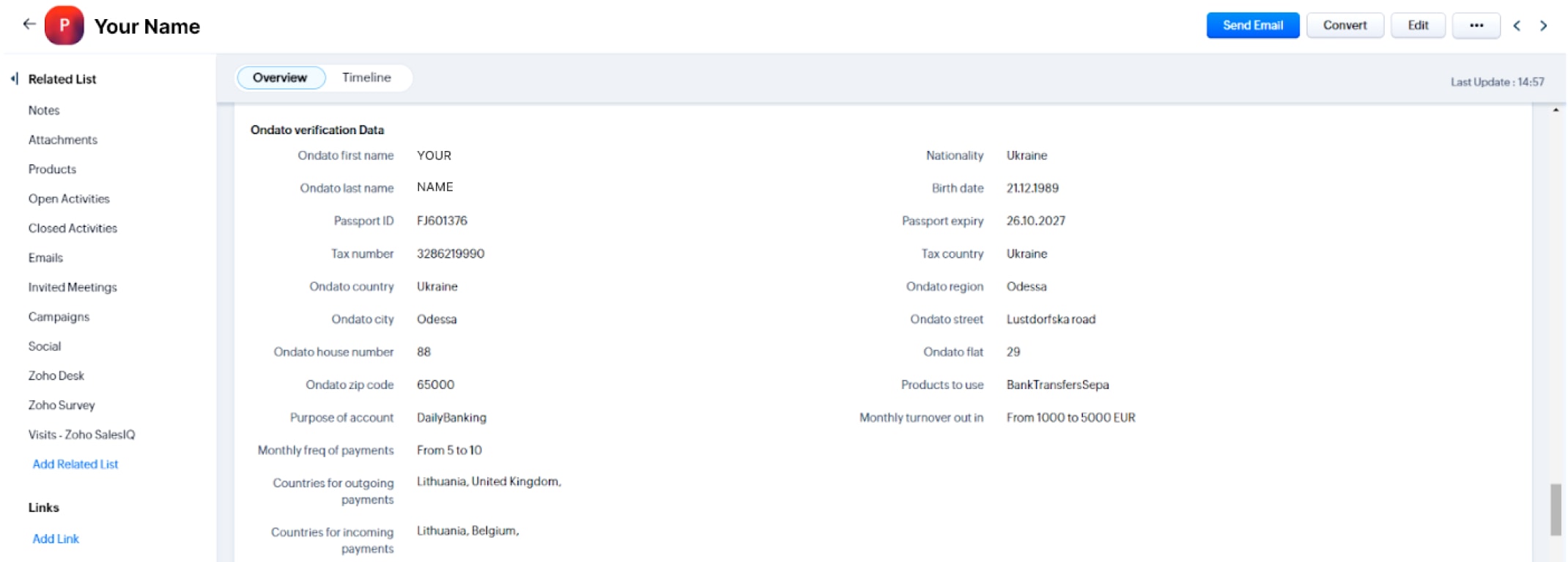 Tax Identification Number is also visible in the CRM along with the rest of the information on the registered client.
