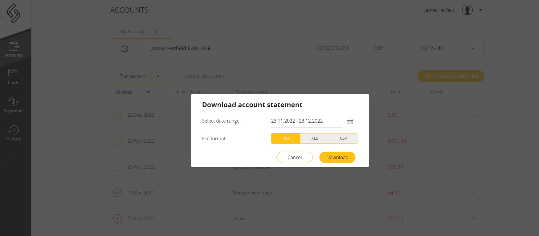 Each Customer has the option to download an account statement of his/her particular account that shows the transactions flow for the period selected.