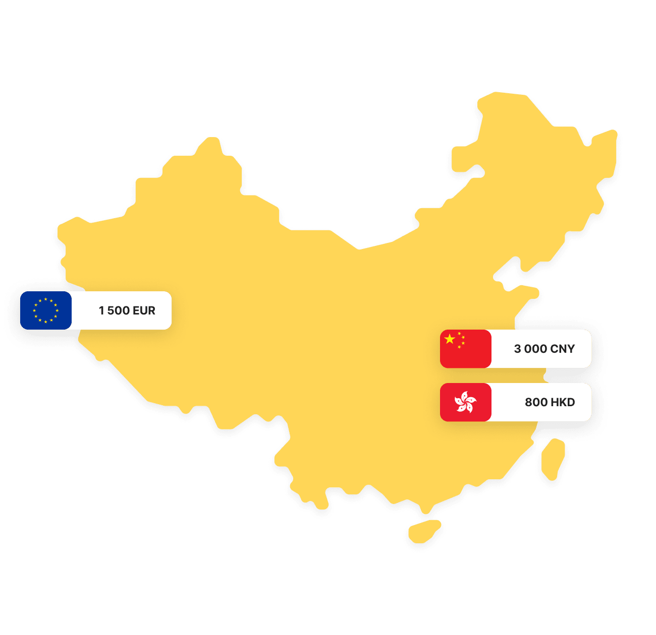 Effectuez des transactions en yuans chinois et en dollars de Hong Kong et bénéficiez d'un accès direct aux marchés chinois et européens.
