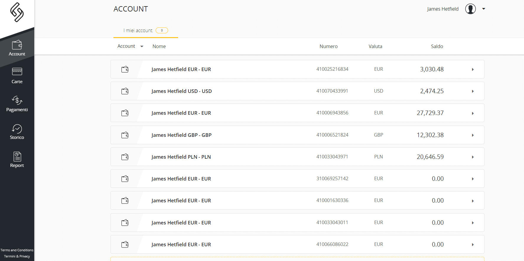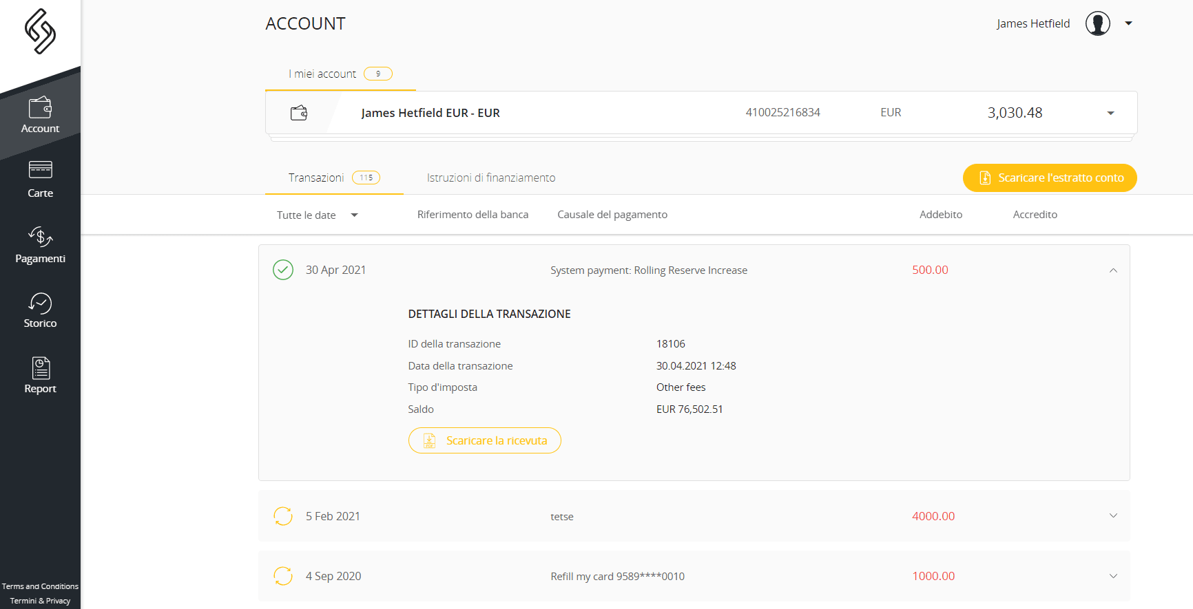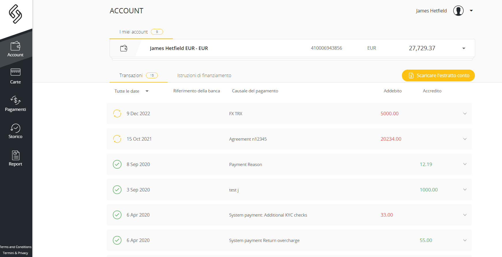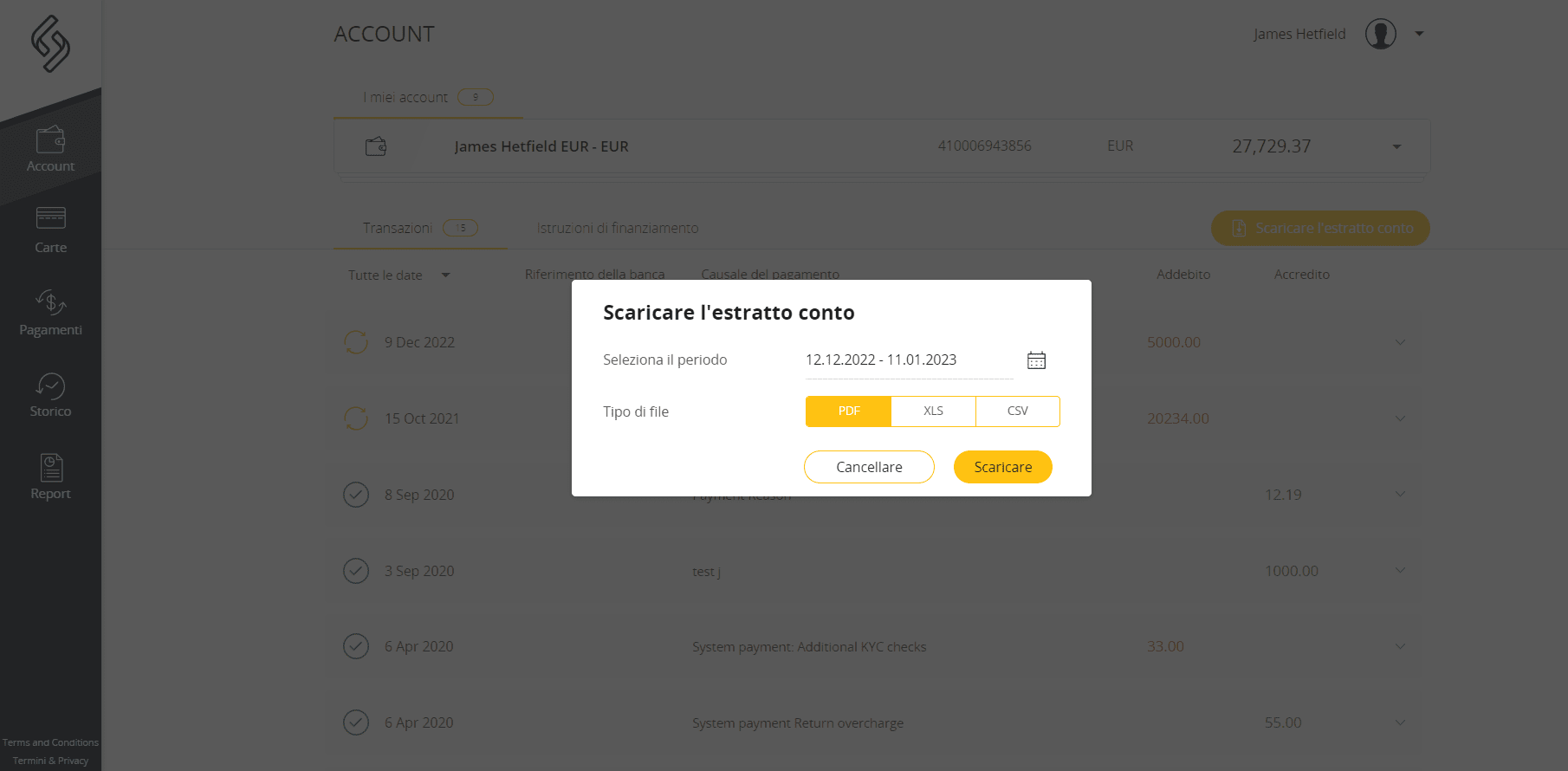 Ogni Cliente ha la possibilità di scaricare un estratto conto del proprio conto che mostra il flusso delle transazioni per il periodo selezionato.